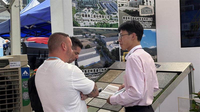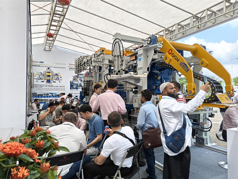 本次廣交會(huì)期間,泉工股份在室外展位:12.0 C21-24和室內(nèi)展位:20.1 K11雙展位聯(lián)動(dòng)展示。其中,公司重點(diǎn)展出了具有代表性的高端混凝土砌塊成型設(shè)備——ZN1000-2C全自動(dòng)制磚機(jī)。該設(shè)備融合中德先進(jìn)技術(shù),具有高效率、高精度、低能耗、智能化等突出優(yōu)勢(shì),充分展現(xiàn)了泉工在智能制造與綠色建材裝備領(lǐng)域的領(lǐng)先實(shí)力。