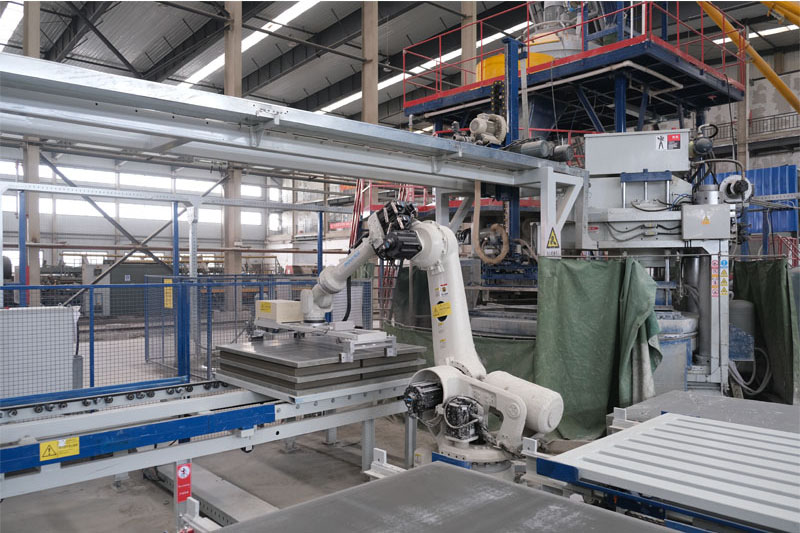 三工位轉(zhuǎn)盤式大板/路沿石濕法成型機(jī)產(chǎn)品設(shè)備生產(chǎn)線排布